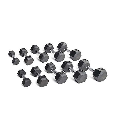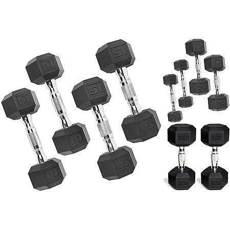 Walmart [walmart.com] has 150-Lb CAP Rubber Hex Dumbbell Set (2 x 5, 10, 15, 20, 25 pounds) for $128.97. Shipping is free.