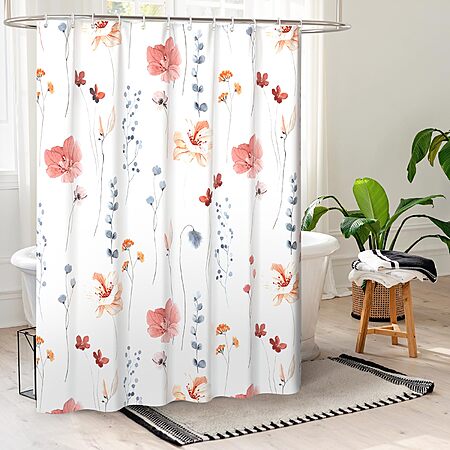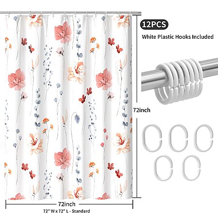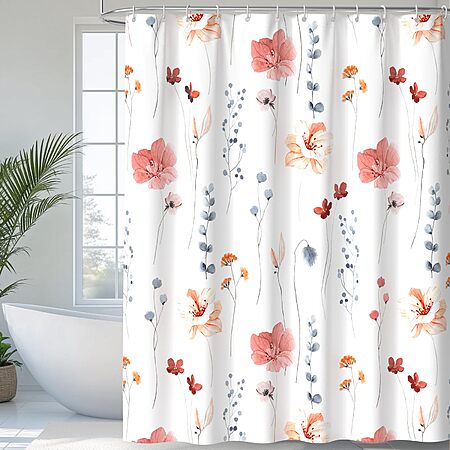 72" QiyI Watercolor Floral Shower Curtain Set w/ Hooks (Flowers Print, Machine Washable, Pink $6.99 + Free Shipping w/ Prime or on $35+