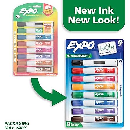 [S&S] $6.64 | 8-Count EXPO Magnetic Dry Erase Markers with Eraser, Assorted Colors, Chisel Tip at Amazon