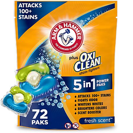 Model: ARM & HAMMER Plus OxiClean Stain Fighters: 5-in-1 Laundry Detergent Power Paks, Fresh Scent, 72 Count