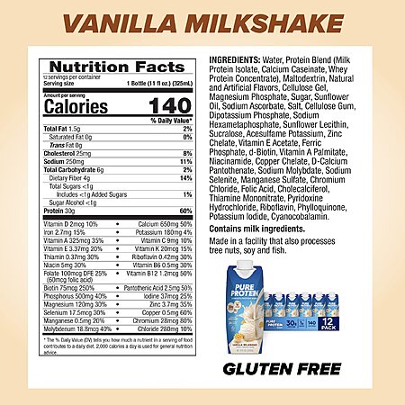 Model: Pure Protein Vanilla Protein Shake, 30g Complete Protein, Vitamins A, C, D, and E plus Zinc to Support Immune Health, Ready to Drink and Keto-Friendly, 11oz Bottles, 12 Pack