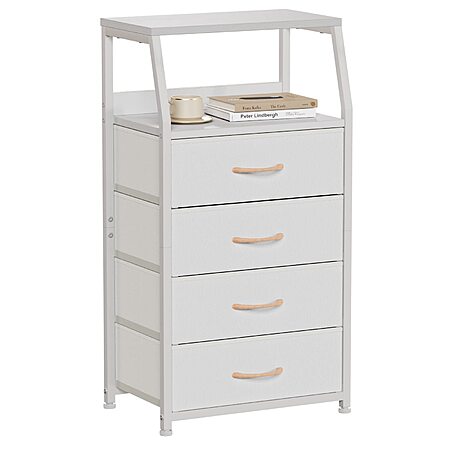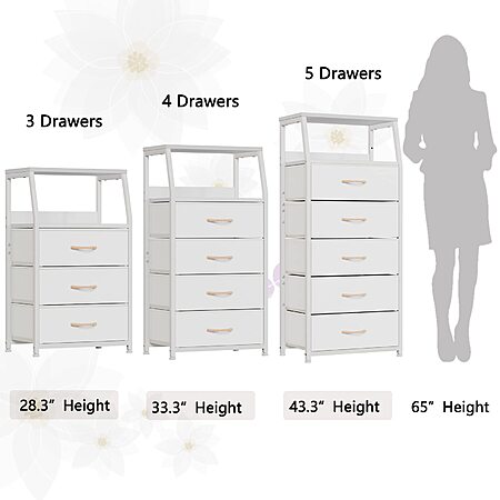 【Sturdy Structure】The chest of drawer is made with sturdy metal frame, which offers high strength support and ensure years of use. The overall frame is stable, and it weighs only 13.5 pounds, isn't bulky and easy to move. Anti-toppling device is provided to prevent it from falling down. Fully guaranteed stability and safety.