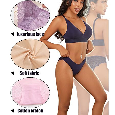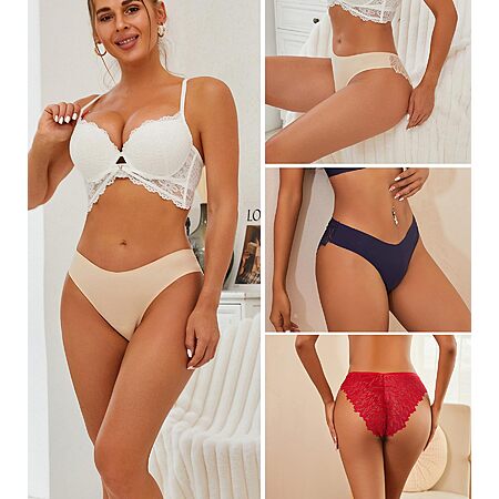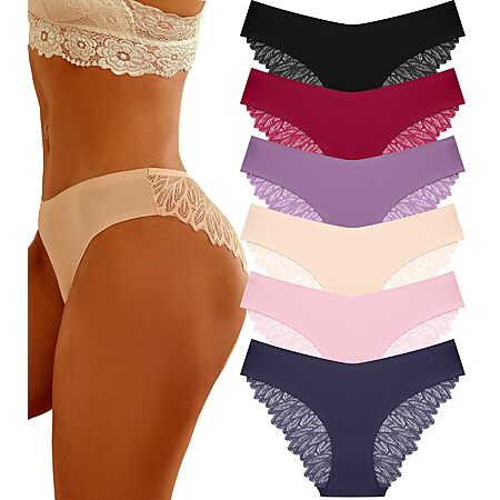 FINETOO 6 Pack Sexy Underwear for Women Silky Seamless No Show Panties Ladies Lace Bikini Lightweight Cheeky Hipster(M) $7.79