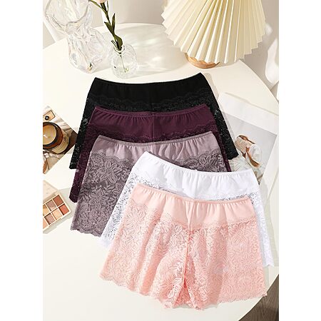 ALL OF SHE Lace Boy Shorts Sexy Cheeky Panties Breathable Womens Underwear Stretch Cotton Waistband Underwear Women 5 Pack $7.99