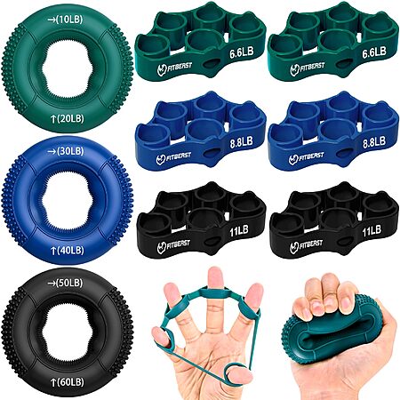 FitBeast Hand Grip Strengthener, Finger Exerciser, Forearm Strengthener Kit - 9 Pack, Targeted Hand & Forearm Strength, Relief & Recovery Kit (Deep Blue) $7.99