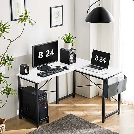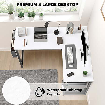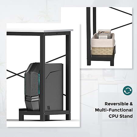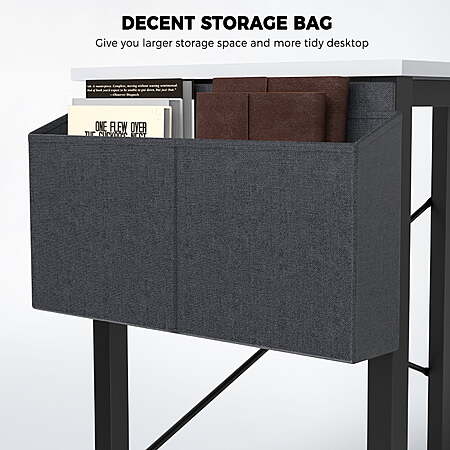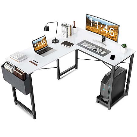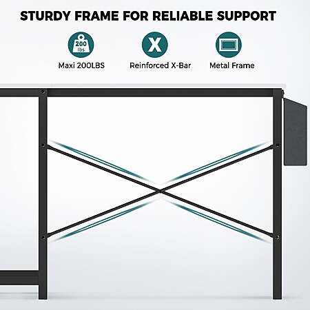 | Product Description: | Revamp your workspace with our sleek and stylish desk. Designed with both form and function in mind, this desk is perfect for home offices, study rooms, or professional environments.The spacious tabletop provides ample room for your computer, notebooks, and other essentials while keeping your space organized. The sturdy construction ensures long- lasting durability, supporting all your work needs.Effortlessly blending into any decor style, its minimalist design and modern aesthetic make it a versatile addition to any room. Whether you're working from home, studying, or managing daily tasks, this desk offers the optimal setup for productivity. 【Premium Materials】 Crafted with premium materials, this corner desk is built to withstand the rigors of daily use. The metal frame provides excellent stability and durability, ensuring that the l-shaped gaming desk remains sturdy during intense gaming sessions or prolonged work hours. Additionally, the desktop is waterproof and easy to clean. Overall Dimension: 49.61”(L)* 41.34”(W)* 29.13”(H). 【Sturdy Frame】Made of high quality, this corner desk with storage will give you a smooth user experience. With a sturdy metal frame, our office desk in L-shape will provide reliable support for you, with a maximum load of 200 lbs. construction enhances both functionality and aesthetics. 【User-Friendly Features】 This desk for the bedroom is designed with the user's convenience in mind. The inclusion of a side storage bag allows for easy organization of essential items such as gaming accessories, office supplies, or personal belongings. The built-in CPU tray at the bottom provides a dedicated space to securely place your computer tower, keeping it off the floor and ensuring proper ventilation. 【Durable and Strong】This home office desk is made of a premium X-shaped metal frame and high-quality MDF. The desk frame is made of heavy-duty powder-coated steel with a corrosion-resistant surface to ensure stability and durability. The desktop is also friction-resistant and easy to clean. 【Fast Installation】Our simple study desk provides professional customer support. The box contains the product instructions, and installation tools, and can usually be assembled in 20 minutes. |