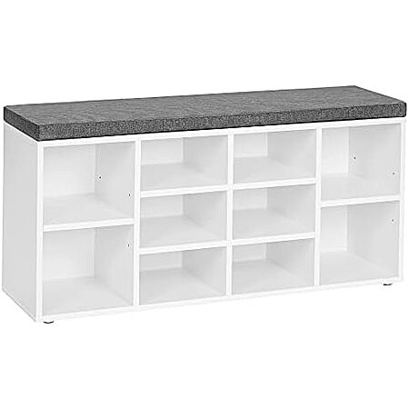 Model: VASAGLE CUSTOS Collection - Shoe Bench, Storage Bench with Padded Seat, Entryway Bench with 10 Compartments, for Bedroom, 11.8 x 40.9 x 18.9 Inches, Cloud White and Dove Gray ULHS010W01