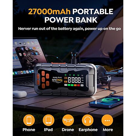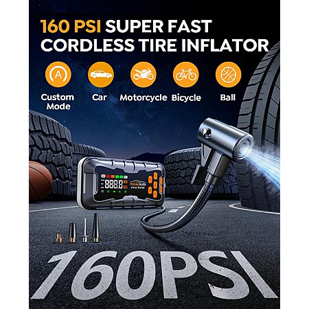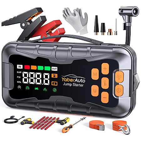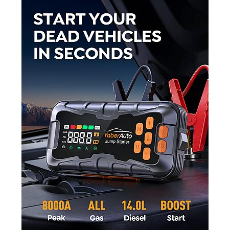 YaberAuto 16-in-1 Jump Starter with Air Compressor 8000A 160PSI Car Battery Jump Starter (All Gas/14L Diesel) 12V Jump Box Car Battery Jumper Starter Portable Jumper Cables $62
