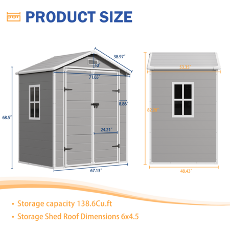 UDPATIO Outdoor Resin Storage Shed 6x4.5 ft, Plastic Garden Shed with Lockable Door for Backyard, Patio, Lawn, Grey White $239.99