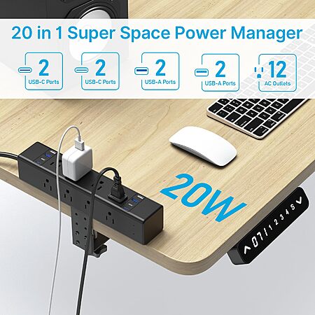 - Desk power station with 12 AC outlets, 4x USB-C, and 4x USB-A ports