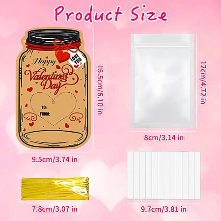 - PERFECT SIZE: Each valentines mason jar cards measures 6.1 x 3.74 inches, providing plenty of room for your personal touch. These bags measure 4.72 x 3.14 inches and are ideal for candies, chocolates, nuts or any small gift