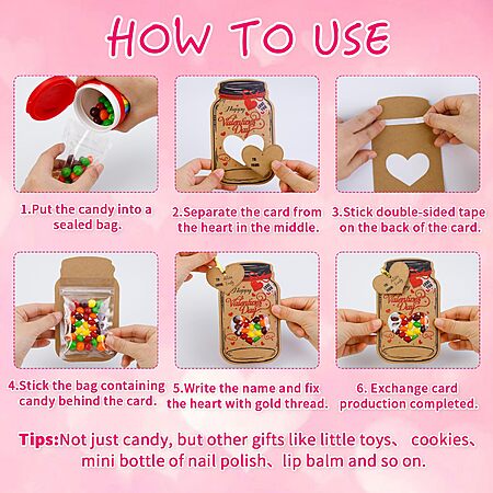 - UNIQUE DESIGN, EASY TO USE:Each valentine cards for kids features an adorable Mason Jar motif, turning your Valentine's gift into a candy jar that's sure to stand out. Simply jot down "To" and "From," wrap up your candies or small gifts, and secure them to the back of the valentines cards