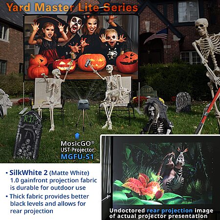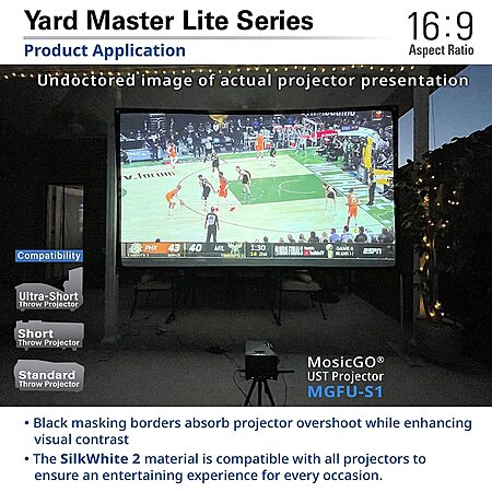 - Wrinkle-Free Viewing: SilkWhite 2 material, 1.0 gain, supports front & rear projection with wide viewing angle and black borders for better contrast