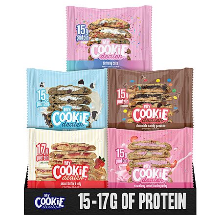 My Cookie Dealer Protein Cookies, Variety Pack (5-Pack, 2.2oz Each) - 15-17g of Protein per Cookie - Individually Wrapped Travel Snacks $12.99