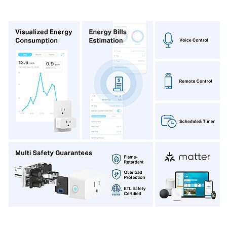 - 【Voice & Remote Control】 With built-in support for both Alexa and Google Assistant, issue simple voice commands to adjust settings, turn devices on or off, or even access specific functions without lifting a finger. Manage Tapo P110M and its connected devices from anywhere with the user-friendly Tapo app.