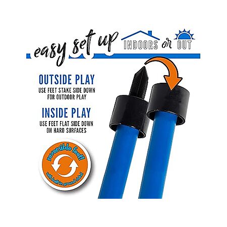- REVERSIBLE STAKES: You can play on soft outdoor surfaces or smooth indoor surfaces by simply reversing the stakes for maximum traction