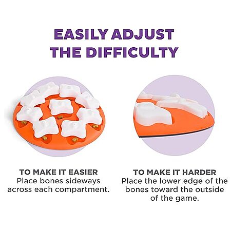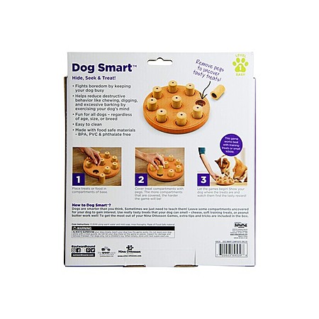 - Dogs pick up bones to find hidden treats – multiple ways to play and make the game easier or harder for your pet; see our Tips and Tricks for details ~OR~ Dogs remove pegs to find hidden treats – multiple ways to play and make the game easier or harder for your pet; see our included Tips and Tricks for details