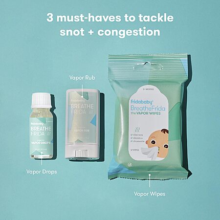 Frida Baby Breathe Easy Kit Sick Day Baby Essentials - 3pc Set Includes Vapor Wipes, Vapor Rub + Organic Vapor Drops - $13.98