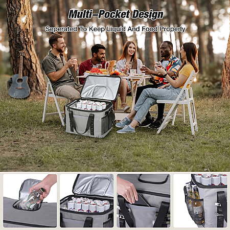 SINGES via Walmart.com has WARMOUNTS Insulated Bag 75 Cans & Soft Cooler Bag 2 in 1, w/ Insulating Cover, Upgraded Leakproof Camping Cooler Bag 2 Compartment for Camping Hiking Picnic Beach on sale for $17.89. Shipping is free w/ Walmart+ (free 30-day trial) or on orders of $35+.