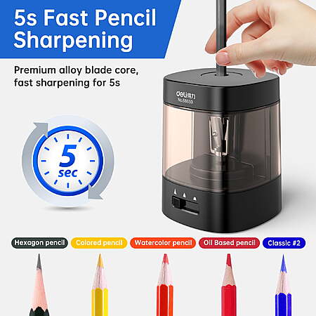 $8.99*:Deli Electric & Battery Pencil Sharpener, Automatic with Adjustable Thickness(Various Color)