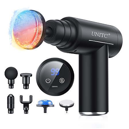Unitc Mini Massage Gun with Heat & Cold, Deep Tissue Messager with 6 Heads $19.69