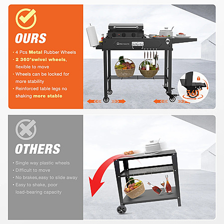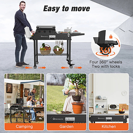 SINGES via Walmart.com has WARMOUNTS Portable Outdoor Grill Table Adjustable Length, Folding Grill Cart 400 lb Capacity, 37"x 17" Grill Stand with 4 Wheels, Side Table, Fit 11"-24" Grill, Pizza Oven Etc for Camping BBQ on sale for $59.3. Shipping is Free.