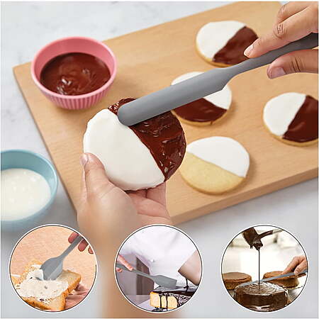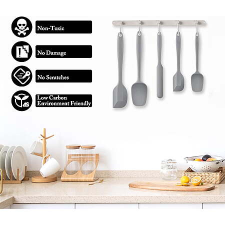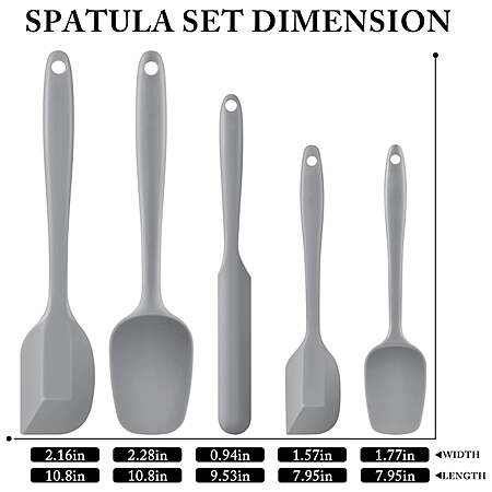 | Product Description: | Food grade silicone scraper set, suitable for baking, cooking and mixing, heat resistant BPA free utensil spladers High quality food grade silicone material with smooth and flexible thin edge will not damage your pots and pans. The average heat resistance of a typical silicone spatula set is between 400 and 600 degrees. Easy to clean and wash: It can be cleaned by dishwasher, and is very suitable for non stick cooking utensils. [ HIGH QUALITY ] : 100% made of Food Grade Silicone Material. Low Carbon and Environmentally Friendly Non-toxic, lead free Odourless. Smooth flexible thin edges, No scratches, No damage for your pots and pans , Climate Pledge Friendly ! [ SEAMLESS ONE PIECE DESIGN] :Seamless one piece design compact and sturdy ,easy to clean ,and Non-Stick ,Soft Handle for better grip ,Noiseless & Harmless ,Perfect for baking ,cooking and mixing etc., [ HEAT RESISTANT ] : Temperature Resistant -104℉~600℉(-40℃~315℃). The average heat resistance of a typical silicone spatula is between 400 to 600 degrees. Anything less isn’t recommended. Also can be as a good Gift .Quality Life ,Safety First . [ PACKAGE ] 1 set including 5 pieces ,1 x Medium Spatula Spreader / Knife 9.53*0.94''(24.21*2.39cm),1 x Large Spoon Style Spatula 10.8*2.28 ''(27.43*5.79cm),1 x Large Spatula 10.8*2.16''(27.43*5.49cm),1 x Small Spatula 7.95*1.57''(20.19*3.99cm),1 x Small Spoon Style Spatula 7.95*1.77''(20.19*4.5cm ) ,Different sizes to meet different needs . [ EASY TO CLEAN ] Dishwasher Safe, perfect for your nonstick cookware. |