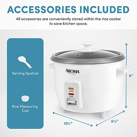 AROMA® Rice Cooker, 3-Cup (Uncooked) / 6-Cup (Cooked), Auto Keep Warm, 1.5 Qt, White, ARC-363NG $17.99