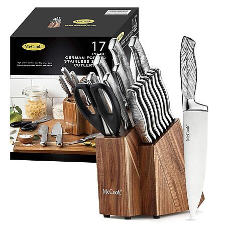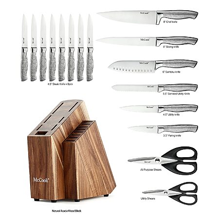 McCook® Premium Knife Set, Full Tang Hammered German Stainless Steel Kitchen Knife Set w/8 Steak Knives and Acacia Block $50.99