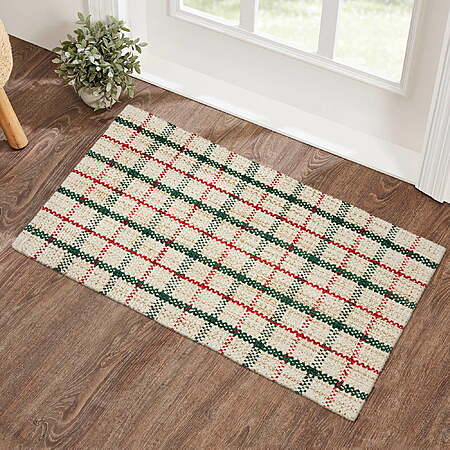 Festive Design: Features a traditional multi-color plaid pattern in red and green on an ivory ground, adding seasonal charm.