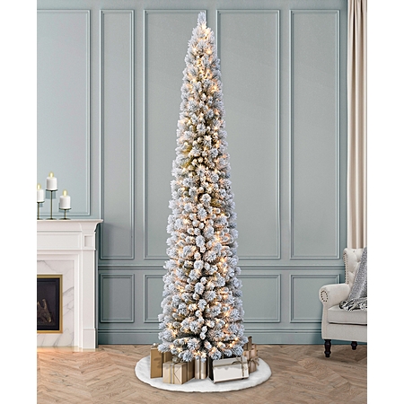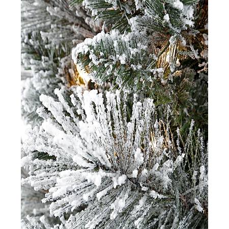 Puleo International 7.5ft Pre-Lit Artificial Flocked Portland Pine Pencil Christmas Tree $75.99