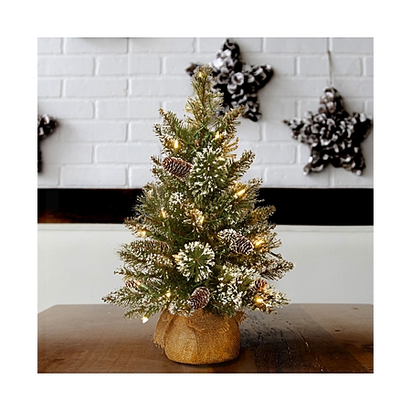 National Tree Company 2' Glittery Bristle Pine Burlap Tree with Warm White Battery Operated Led Lights. Free Shipping w/Orders $49+.