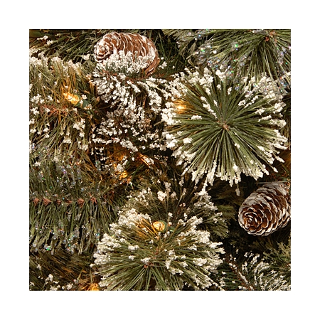 •Trimmed with white-tipped pine cones and glitter