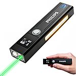 PHILIPS SFL6256 Rechargeable EDC Flat Flashlight with Green Laser, Warm and White LED Combo,1200 High Lumens Aluminium Portable Pocket Lights with 9 Modes,Triple Sources for Outdoors Emergency Working on sale for