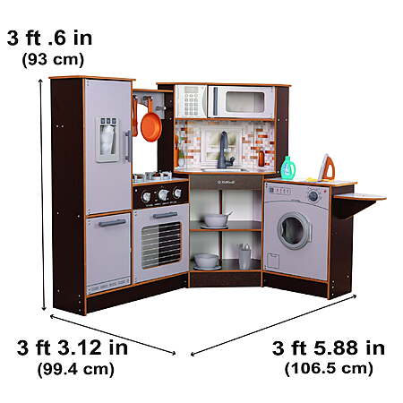 Walmart [walmart.com] has KidKraft Elegant Espresso Wooden Corner Play Kitchen w/ 19 Accessories for $97.33. Shipping is free.