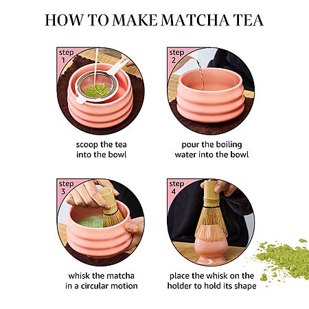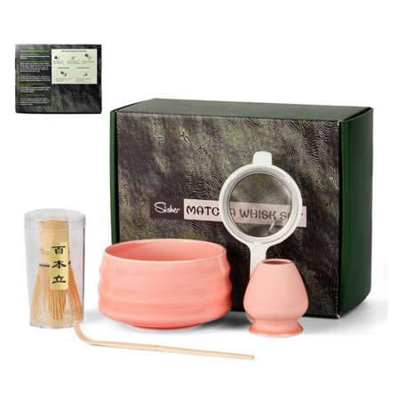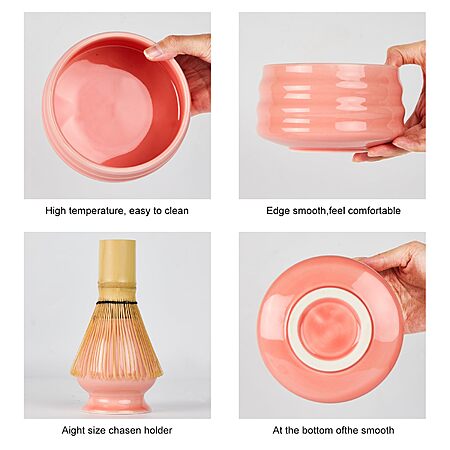 Sisher Matcha Whisk Set with Bowl, 5 Piece Japanese Tea Set (pink) - $6.38
