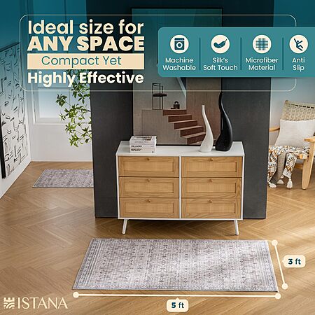 Model: Istana Rugs 3x5 - Beige Grey/Light Cream Area Rug - Kid & Pet Friendly Machine Washable Rug - Non Shedding Living Room Carpet - Foldable Bedroom Area Rug - Eco-Friendly Materials for Bedside Rug