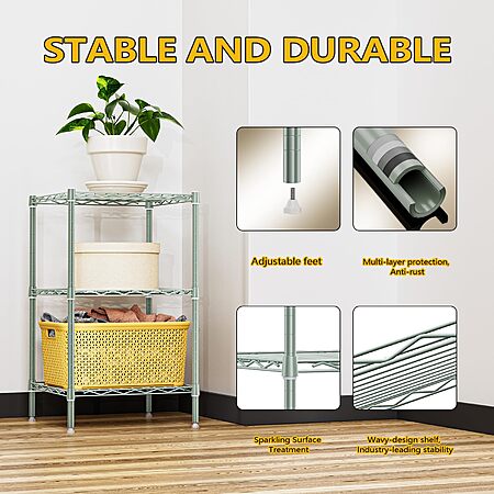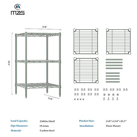 M MZG 750 lbs 3-Shelf Storage Shelves Wire Shelving Unit Standing Metal Rack, 13.8 D x 13.8" W x 25.5" H - $16.11