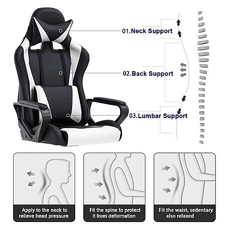 Amazon.com has BestOffice High-Back Gaming Chair PC Office Chair Computer Racing Chair PU Desk Task Chair Ergonomic Executive Swivel Rolling Chair with Lumbar Support for Back Pain Women, Men,White on sale for $59.71. Shipping is Free.