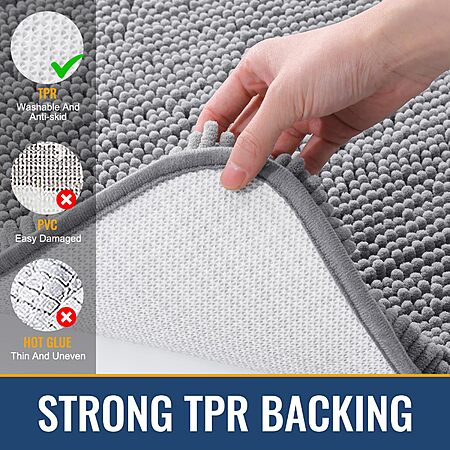 • Non-Slip TPR Backing: Our bathroom mat features a textured rubber backing that provides excellent grip on bathroom tiles, ensuring safety. Important: Place on CLEAN DRY FLAT FLOOR ONLY to avoid slipping. Keep the rug's bottom dry at all times.