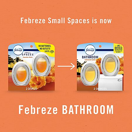 Model: Febreze Small Spaces Air Freshener, Odor-Fighting, Plug In Alternative, Air Fresheners for Home and Bathroom and Kitchen, Closet Air Fresheners, Hawaiian Aloha Scent, 2 Count