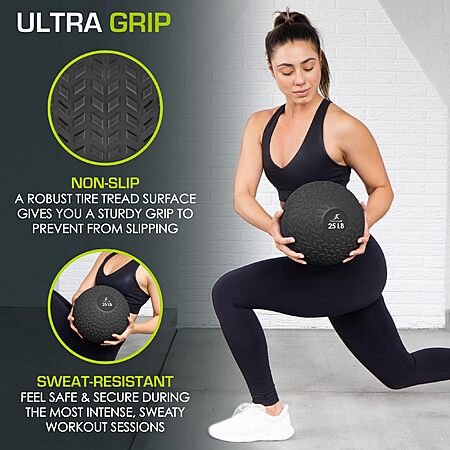 ProsourceFit Slam Medicine Ball 25 Tread Textured Grip Dead Weight Balls for Strength and Conditioning Exercises, Cardio and Core Workouts