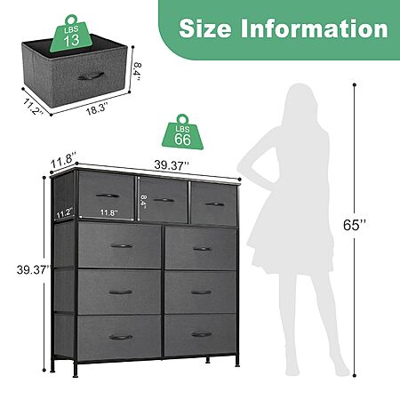 DUMOS 9-Drawer Dresser with Fabric Bins $40 @ Amazon
