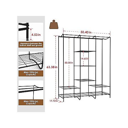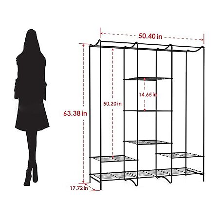 - Large & Functional Storage: Overall size 50.39" x 17.72" x 63.78", offering generous space for clothes, bags, luggage, shoes, and more.