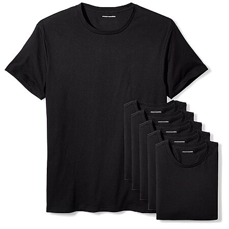 Model: Amazon Essentials Men's Crewneck Undershirt, Pack of 6, Black, Large