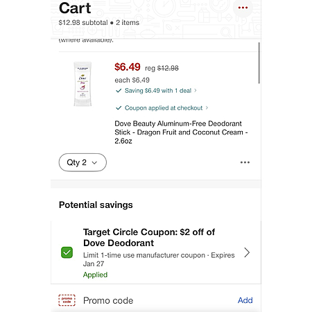 2x Dove Beauty Aluminum-Free Deodorant Stick - Dragon Fruit/ Coconut Cream - 2.6oz $4.49 AC + BOGO Free