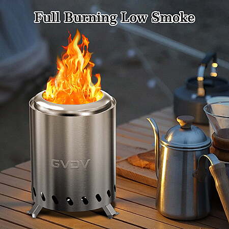 GVDV Hub via walmart.com has 7.5" Tabletop Fire Pit, Smokeless Portable Mini Fire Bowl, Dual Fuel, Stainless Steel, Red/Black/Silver, with Carry Bag on sale for $16.19. Shipping is free w/ Walmart+ (free trial available [walmart.com]) or on orders $35+.