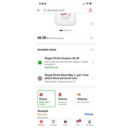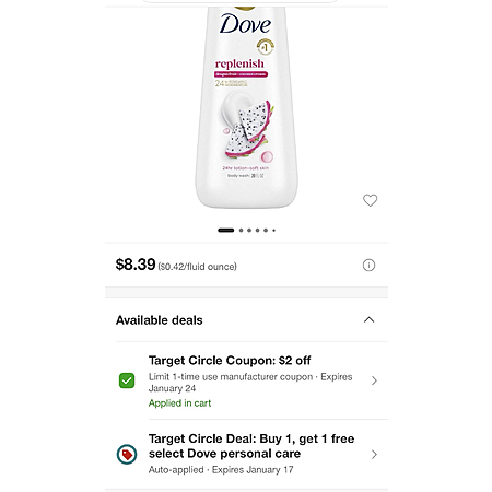 2x Dove Beauty Replenishing Body Wash - Dragon Fruit & Coconut Cream - 20 oz $6.39 AC + BOGO Free