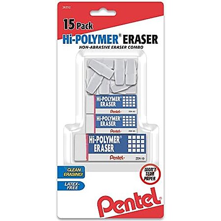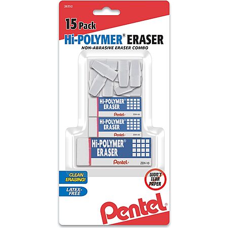 15-Pack Pentel Hi-Polymer Eraser Combo (White) $2.30 w/ S&S + Free S/H w/ Prime or on $35+