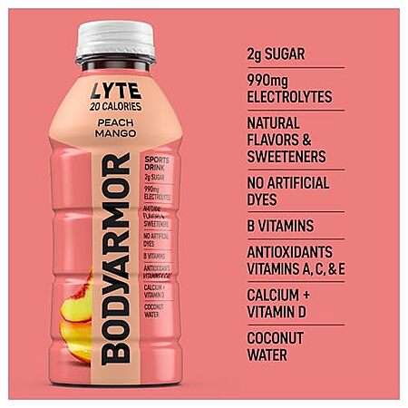 $5.53 | 6-Pack 16-Oz BODYARMOR LYTE Electrolyte Drink (Peach Mango) at Amazon (92.2¢ each)